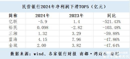 其中,有10家出现了净利润下滑,亿联银行是行业内唯一亏损的企业,其净利润“扭盈为亏”,在2024年亏损了5.9亿元。